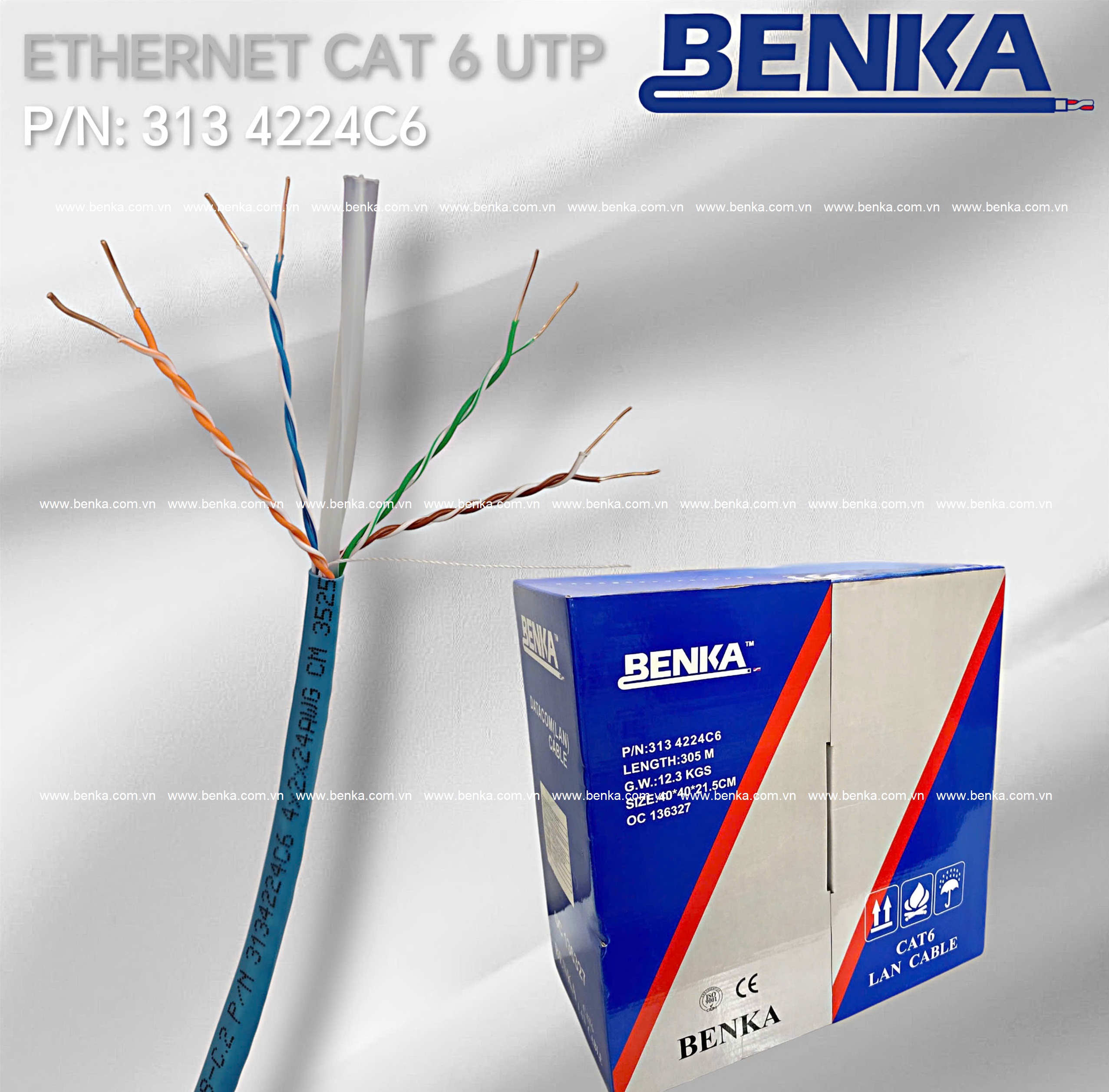 Cáp Mạng BENKA ( 313 4224C6 ) Benka U/UTP CAT.6 Cable 4×2×24 AWG, 305m/box | Chính Hãng – Giá Tốt Nhất
